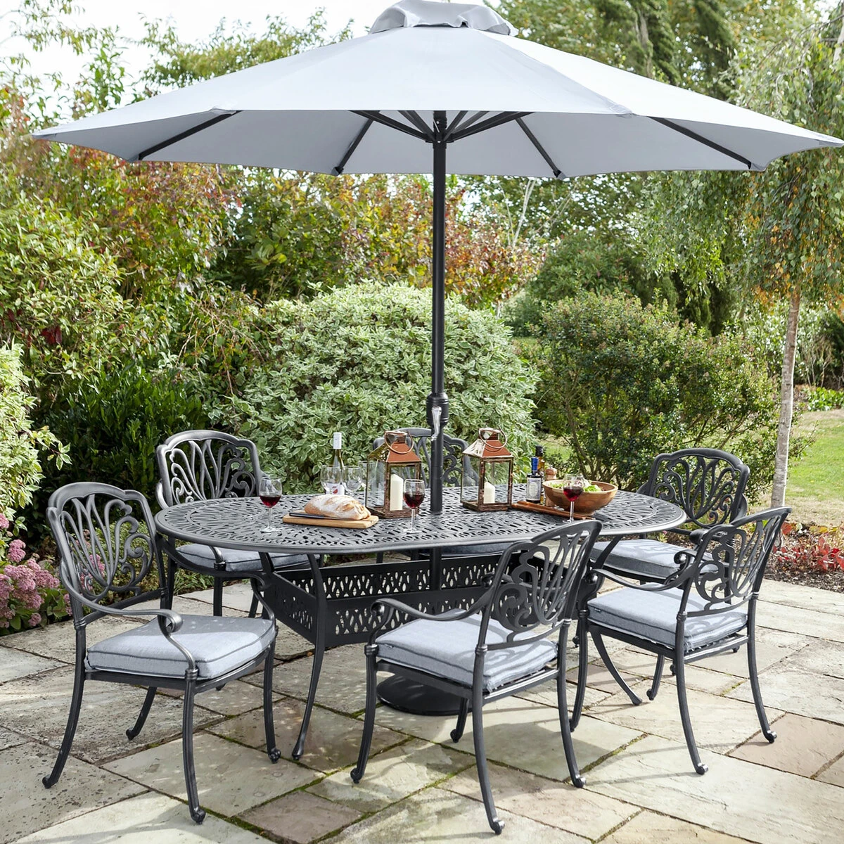 Growing families and making new friends, the Amalfi 6-seat oval dining set will be the answer to all your alfresco gatherings. Complete with permeable weather-ready cushions that can be left outside all summer long, this set combines elegant, classic curves and a smooth, solid finish. Its durability means it can be left outside in all seasons and still look beautiful in years to come. The oval table shape makes this set spacious yet sociable.