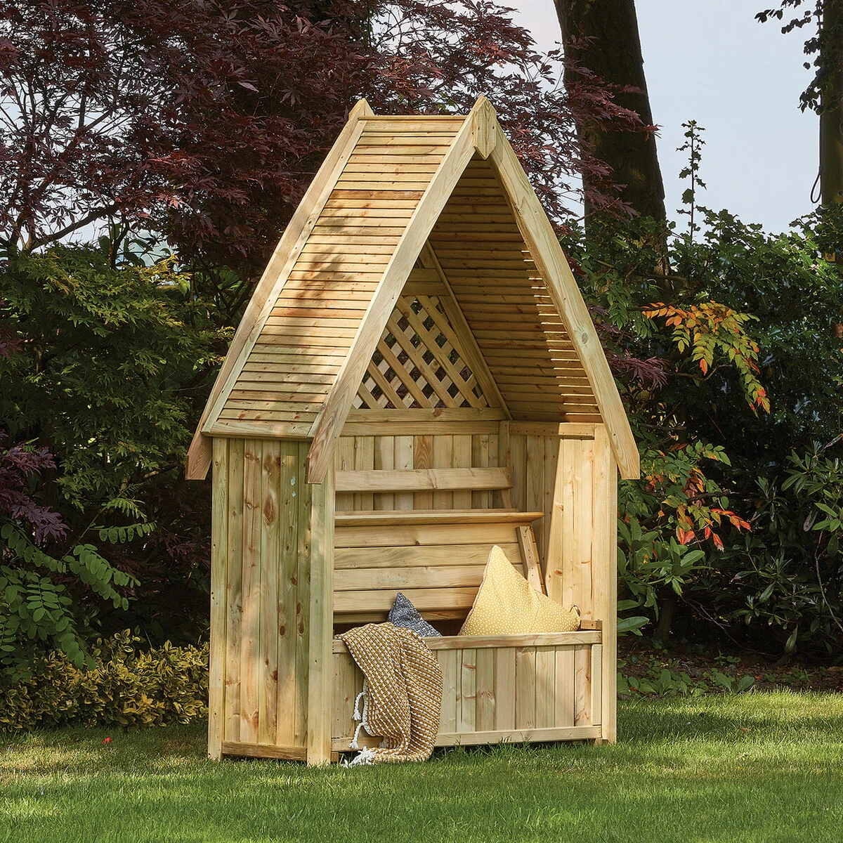 Add style and storage to your garden with the Carsington Storage Arbour. This arbour is perfect for garden seating and provides a handy storage area for toys, gardening equipment, and garden tools. Made from pressure-treated wood, it comes with a solid timber roof that offers protection from the wind and weather. With self-assembly required, it is a durable and long-lasting option for your outdoor space.