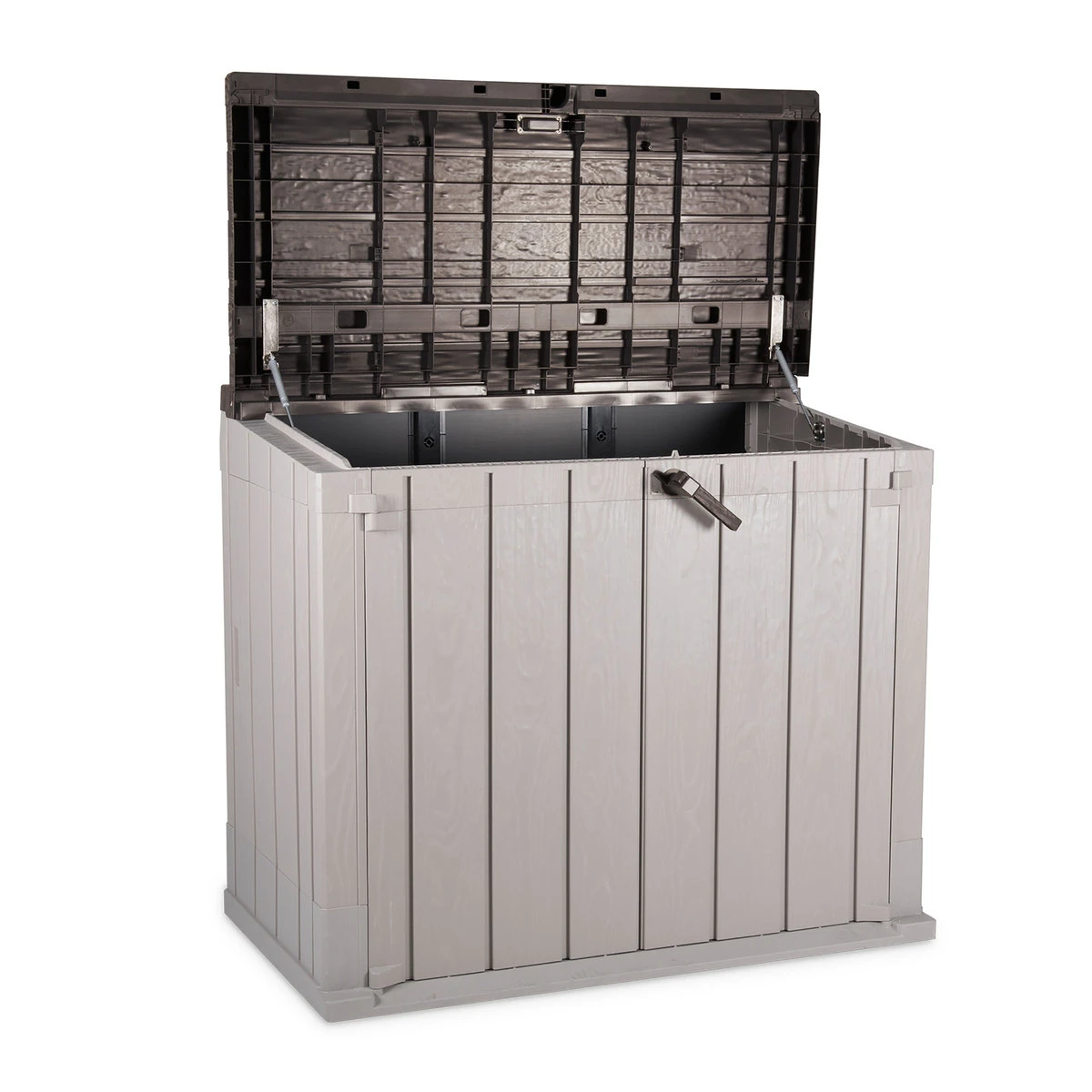 Storer Plus is a multi-purpose garden storage unit with an 842L capacity. It comes with its integral base to keep things tidy inside. It comes with two front doors and a roof for easy opening.