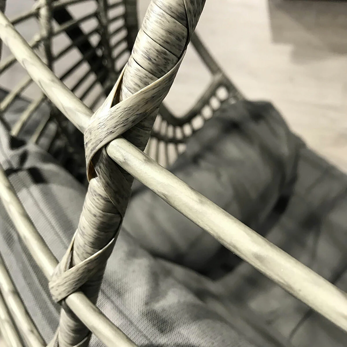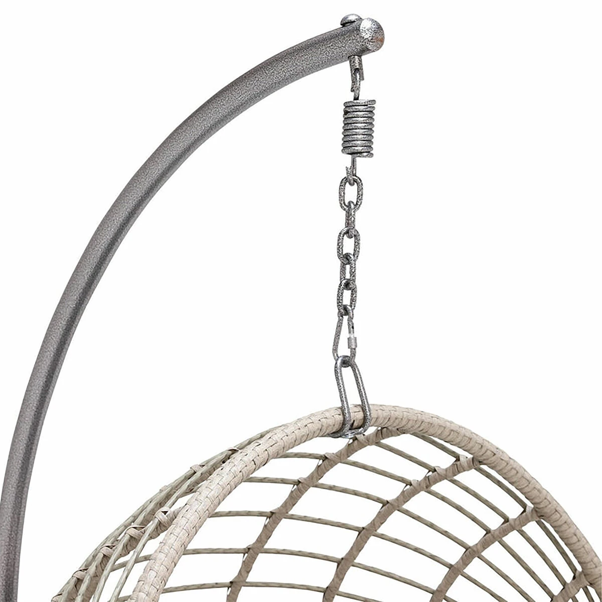 Materials: Base made from steel, chair made from PU with woven rattan effect. The PU Rattan is UV proof to avoid fading and deterioration, and the metal base has been treated with an anti-rust coating to ensure the long life of our hanging chair. However, as with all outdoor furniture, it is recommended that it is not left outdoors for long periods of inclement weather.