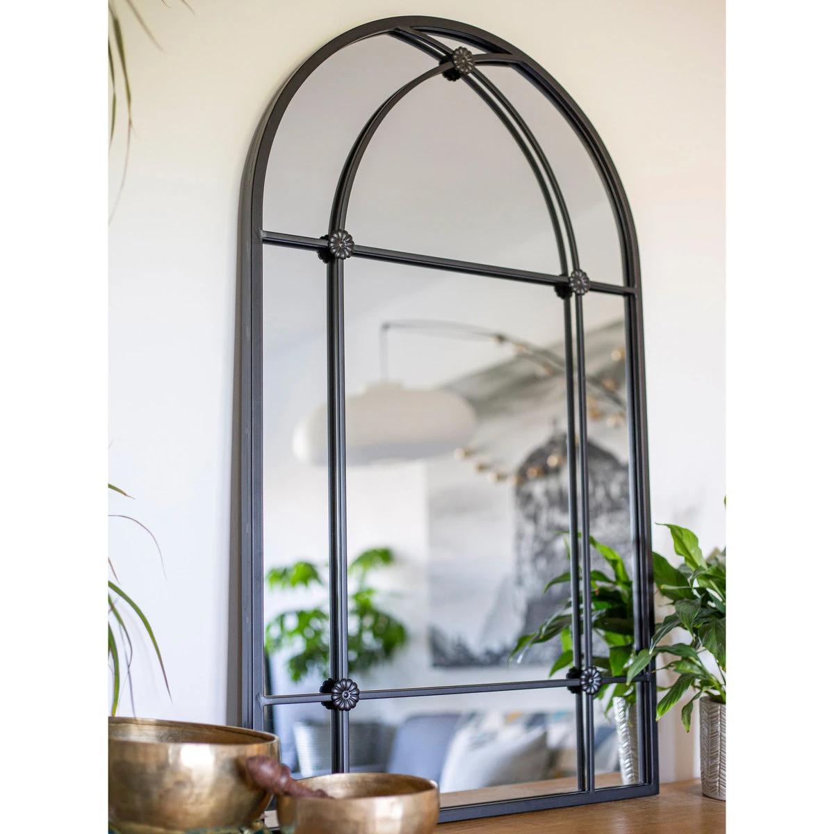 This collection of mirrors will make eye catching features in your garden or outdoor living space. The Arundel Mirror has a traditional arched shape and black metal effect finish. This model made from durable steel and glass will give character to your garden, casting the illusion of a real window on your garden wall. Comes complete with waterproof backing for easy use.