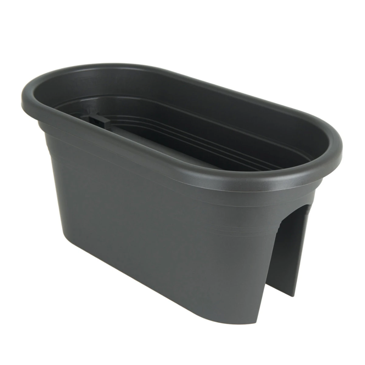 The Veneza Balcony Trough is specially designed to fit onto balcony railing. The trough is made from UV pigment protected polypropylene and has an attractive anthractie matte finish.